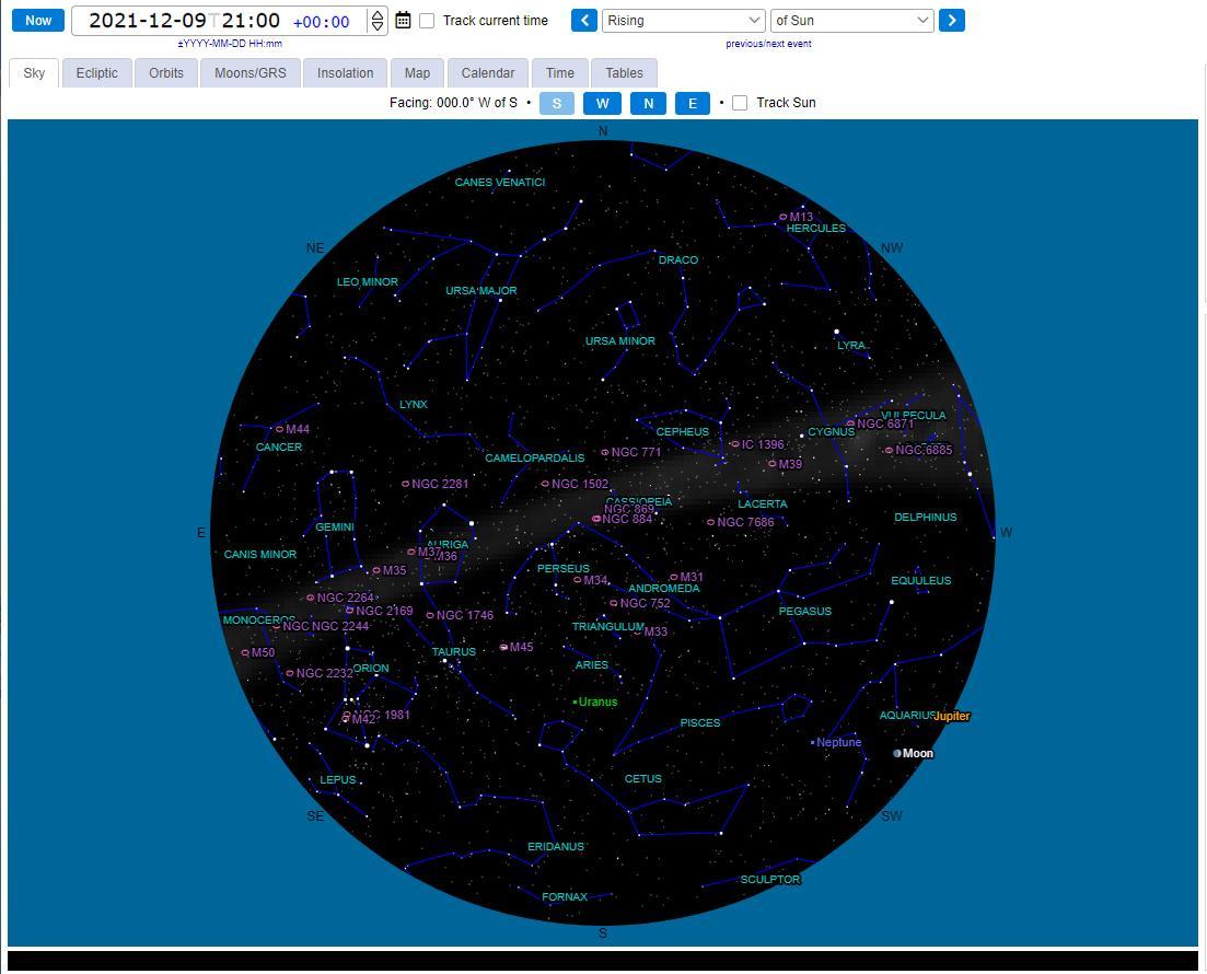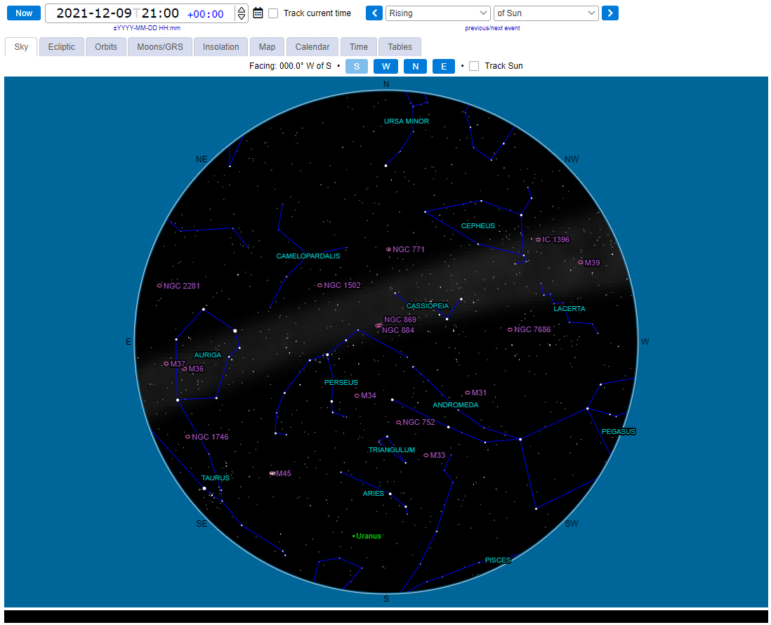 Located in Aries at mag +5.7 Uranus is occulted by the moon on the 5th December disappearing behind the moon at 16;51 and reappearing at 17:17. Should be an interesting sight in most telescopes. And a good candidate for imaging too.
