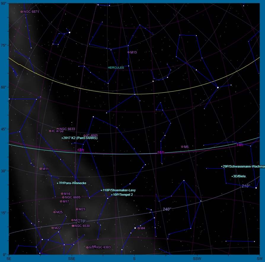 Here’s what’s up this month! July (hopefully) brings long warm evenings which are ideal for chasing meteors, watching noctilucent clouds or evenings watching the passing satellites.