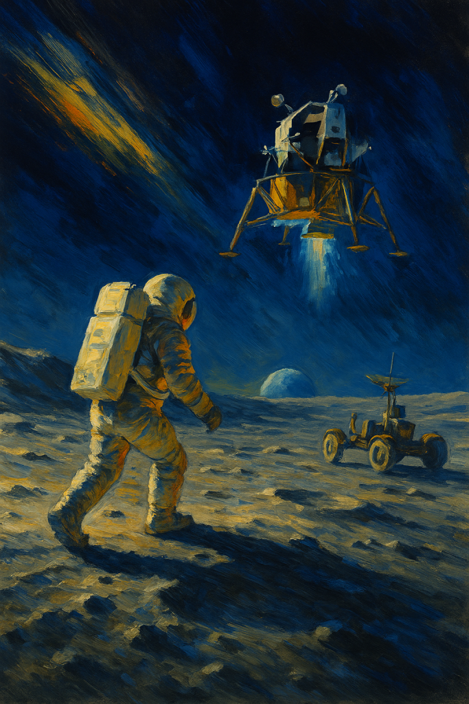 Working closely with NASA, McCall visually chronicled the Space Race and designed mission patches, including for Apollo 17. His art has appeared on U.S. postage stamps and in iconic murals at institutions like the National Air and Space Museum, The Pentagon, and Disney’s Epcot, where his mural “The Prologue and The Promise” featured in the Horizons attraction.