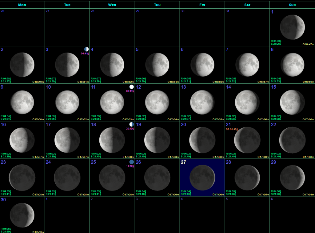 Julys moon calendar from Sky View Café (skyviewcafe.com)