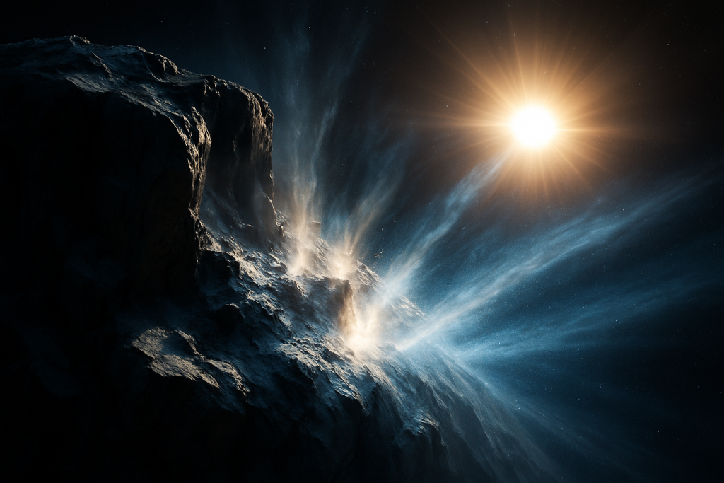 Icy cliffs and jets of vapor burst into life as the comet nears the Sun.