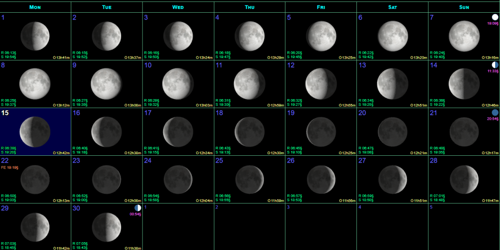 | Sep 21 | 19:54 | New Moon marks the start of a new lunar cycle |