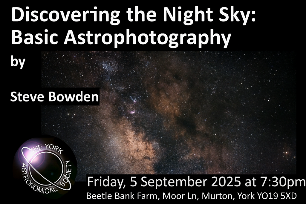 For further details see the events page Astronomy Presentations by guest speakers | York Astro and our Facebook group (20+) The York Astronomical Society Chat Group | Facebook