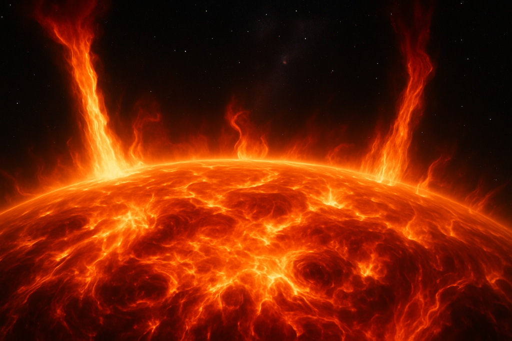 The Sun is powered by nuclear fusion in its core, where hydrogen atoms combine to form helium, releasing enormous amounts of energy. This energy moves outward through the Sun’s layers and eventually radiates into space as sunlight, heat, and streams of charged particles that shape space weather.