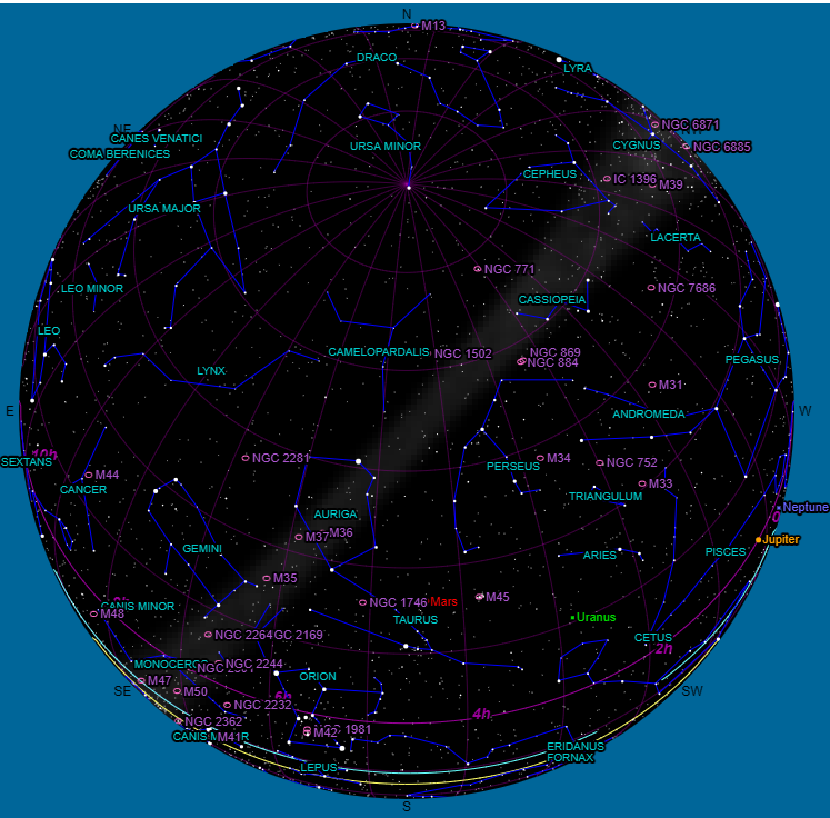 Mars is still a great planet to view this month, currently located in Taurus to the West of the Pleiades Dropping in brightness towards the end of the month.